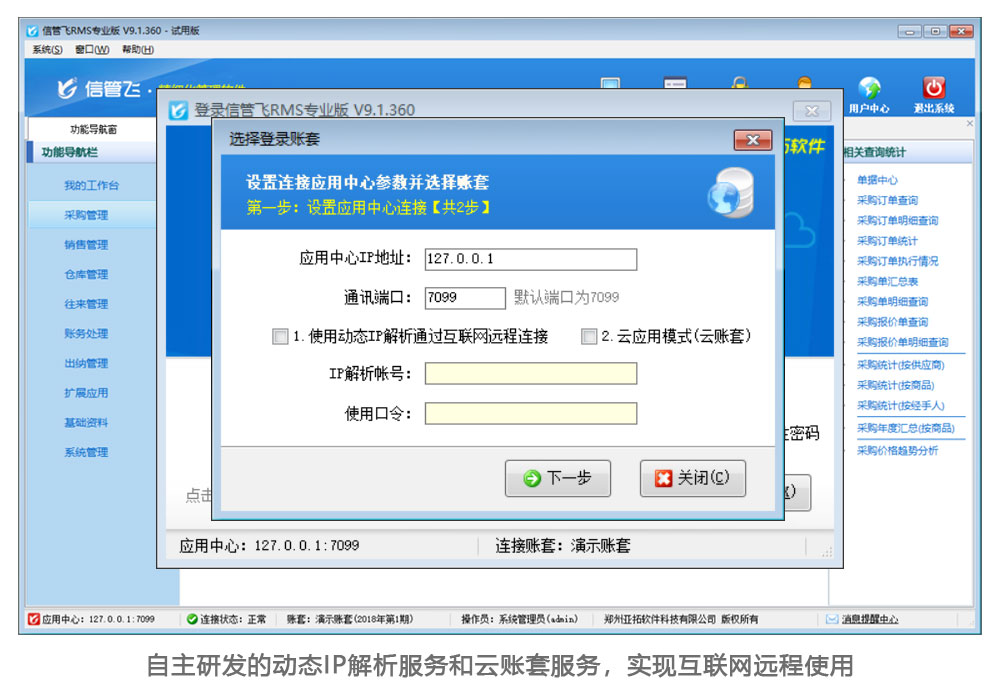 信管飞RMS是亚拓软件基于自主研发的信管飞业务应用平台(著作权登记号:2017SR587531)开发的 精细化管理软件 ( 进销存管理软件、 云ERP软件、 记账软件),主要包括采购管理、销售管理、库存管理、往来账管理、财务管理、出纳管理等业务管理功能,并支持分支机构管理、生产管理、委外加工管理、客户关系管理、会员管理、绩效管理等数十个扩展功能模块。