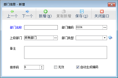 新增部门:增加部门信息,复制新增可以复制当前的部门进行修改后保存。