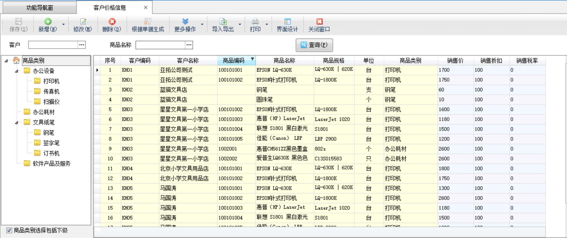查询:可以根据客户名称或者是商品名称对客户价格进行查询。