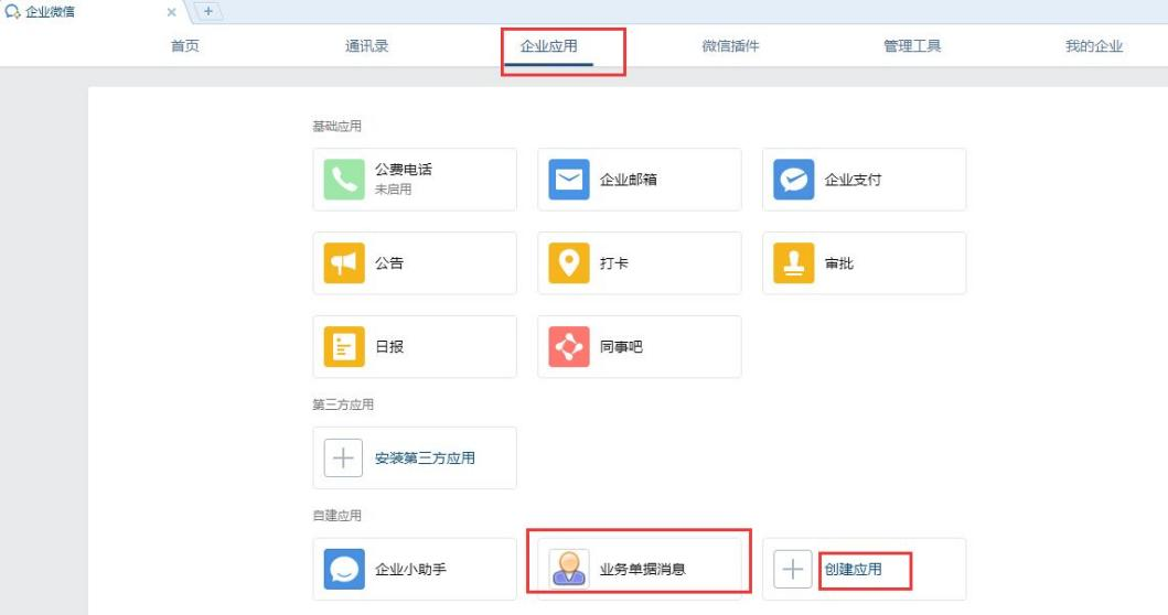 在企业微信“我的应用”内增加应用“业务单据消息”并设置应用可见范围,应用创建成功后,在应用详情界面可以查看企业应用 Agentld 以及企业应用 Secret,如下图所示。