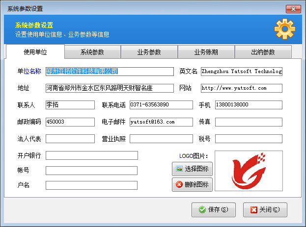 登录软件,在功能导航窗点“系统管理”—》“系统参数设置”,进行系统参数设置,主要包括使用单位信息、系统参数、业务参数以及其他参数。