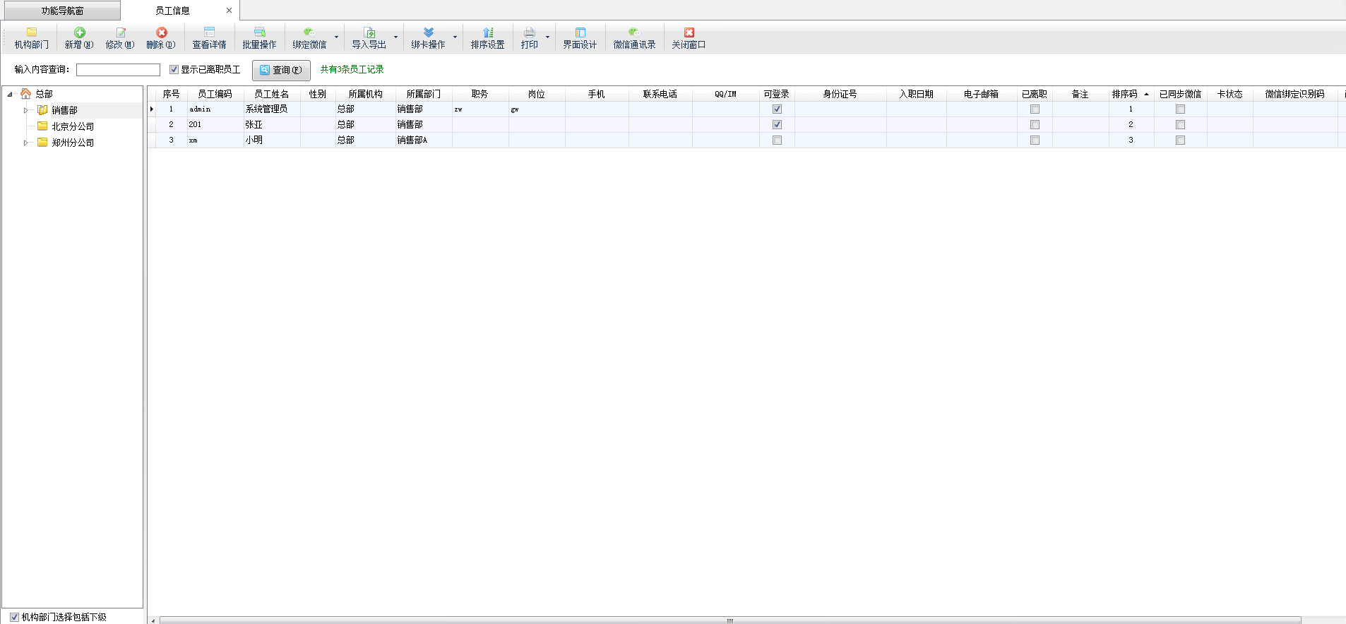 员工资料:员工姓名、员工编码(可选)、所属部门;