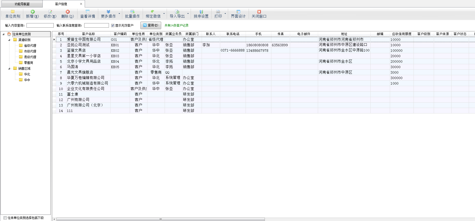 客户资料:客户名称、客户编码(可选)、地址、联系人、联系电话、手机、所属业务员(可选)、单位类别(可选);