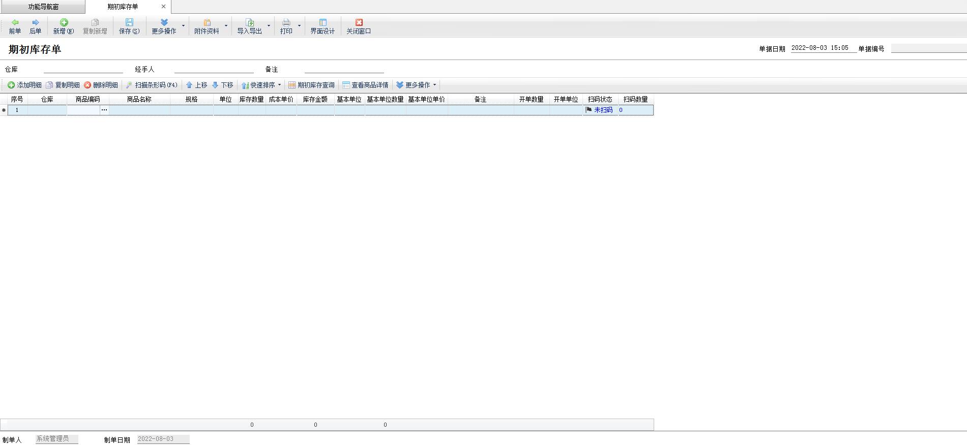 ③如果有多个仓库,则每个仓库开一张期初库存单。