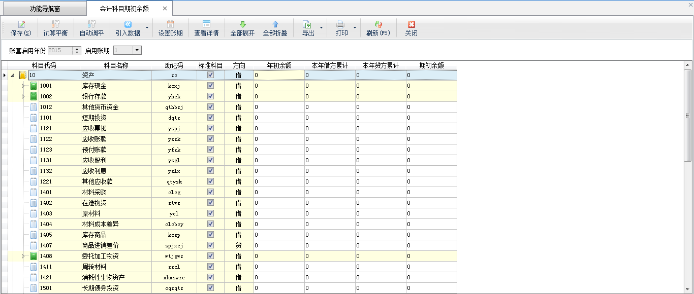 期初会计科目余额