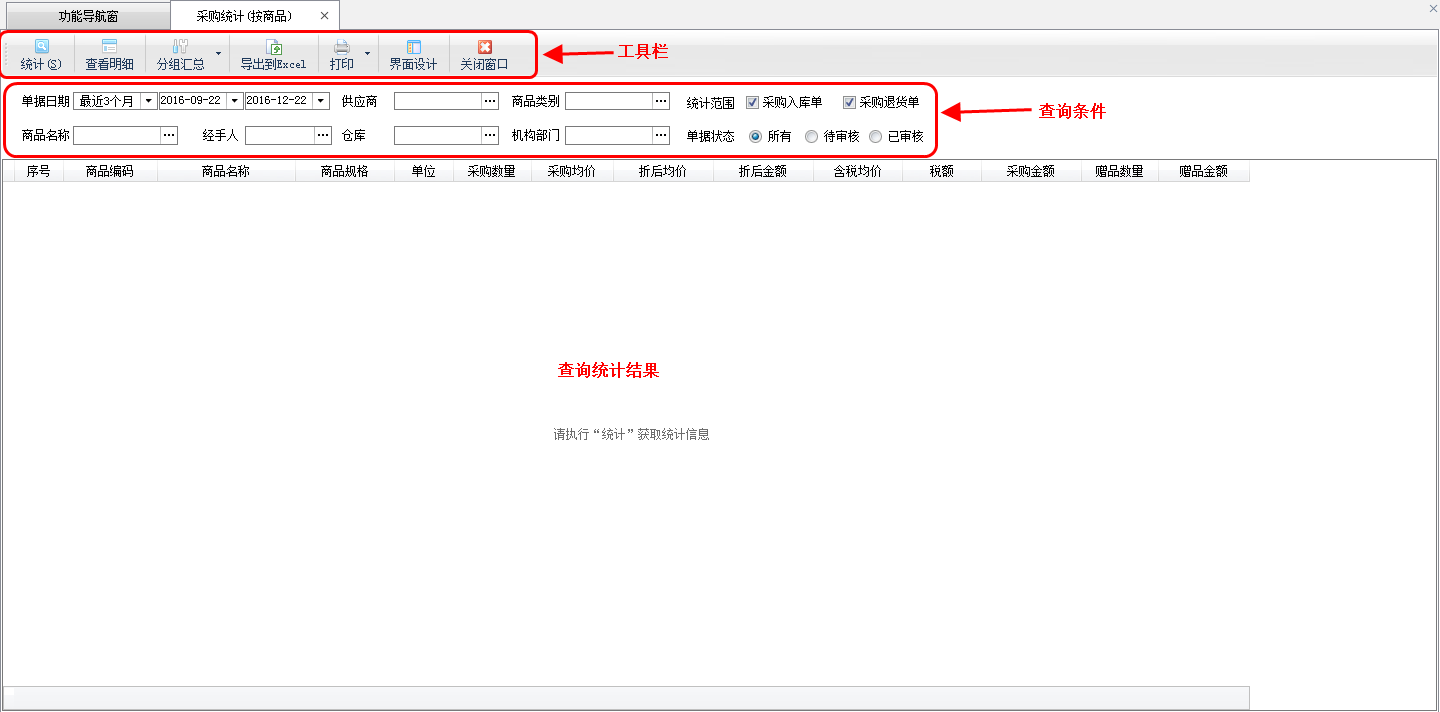 软件中包括各种业务查询和统计,在功能导航窗右侧“相关查询统计”中点击相应的统计查询项目,即可查询和统计相应的数据。