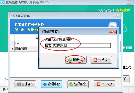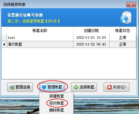 修改确定后点击选择账套,可看到登录界面显示的账套名称为修改后的账套名称,如下图所示:
