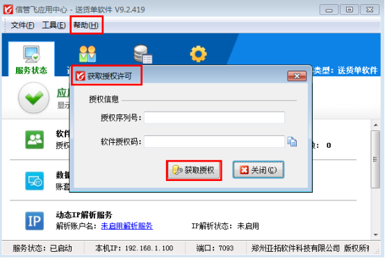 解决方法:请在应用中心程序中,点菜单“帮助”—》“获取授权许可”,然后输入购买的授权许可信息,点“获取授权”即可。获取授权成功后,请关闭应用中心程序,重新运行应用中心程序即可!如下图所示: