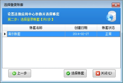二、应用中心程序数据库状态为:连接成功,打开账套管理界面,账套列表没有账套。