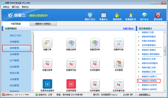 信管飞RMS软件是集采购管理、销售管理、往来管理等一体的进销存软件。在信管飞RMS软件中,销售管理界面可开销售出库单对商品销售出库。有时客户需要查询商品的销售情况,该如何处理呢?本文以“信管飞RMS专业版”为例,示范下信管飞RMS软件如何查询商品销售数量?