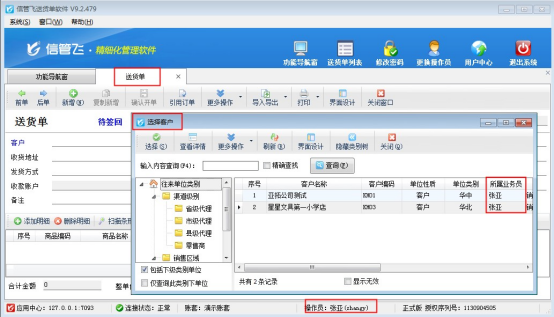 欢迎下载试用这款可维护客户所属业务员的送货单软件:信管飞送货单软件。