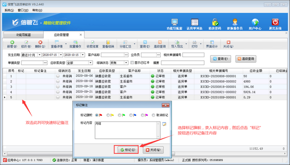 信管飞送货单软件是集送货开单、打印和应收款管理为一体的软件,送货单确认开单后自动生成对应的一笔应收款,有客户存在分批付款情况,针对此情况软件支持对应收款进行批量结销。本文示范下如何批量结销应收款。