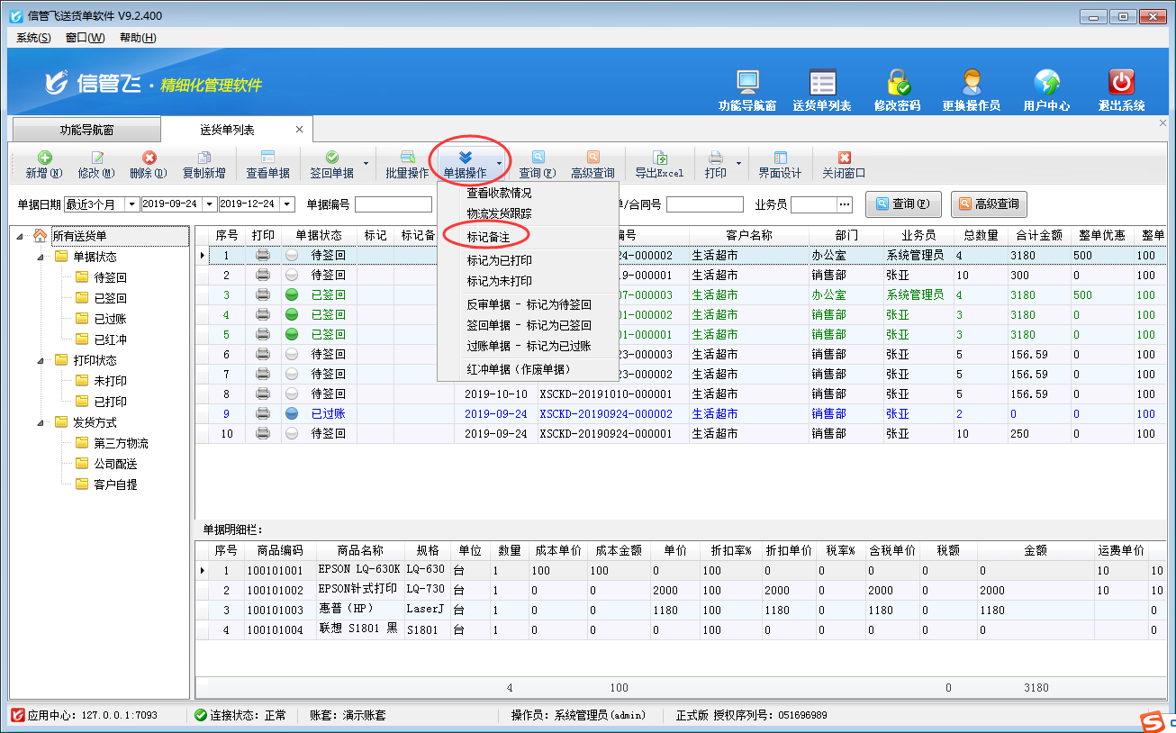 相关文章:信管飞送货单软件如何设置操作员只能查看自己的单据?