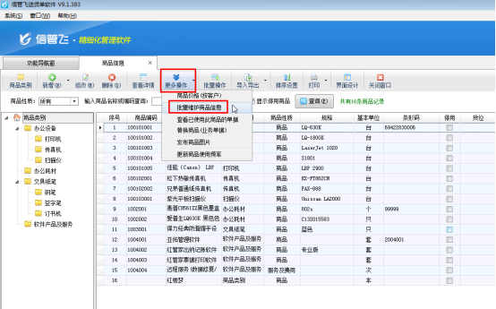 在功能导航窗点击“基础资料”—》“商品信息”打开商品信息主界面,点击“更多操作”—》“批量维护商品信息”,如图所示。