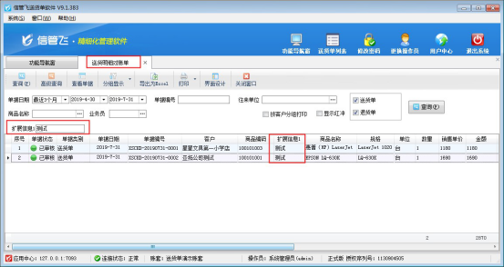 设置后关闭送货汇总对账单界面,然后重新打开,以上设置即可生效,此时送货汇总对账单即可根据“扩展信息1”进行查询,如下图二所示。