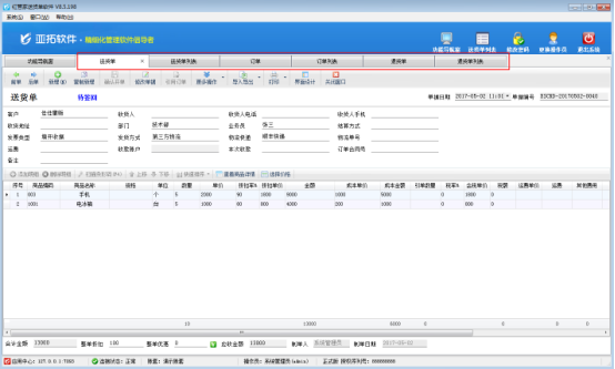 权限设置完成后,登录操作员“张亚”,新开一笔送货单。如下图所示: