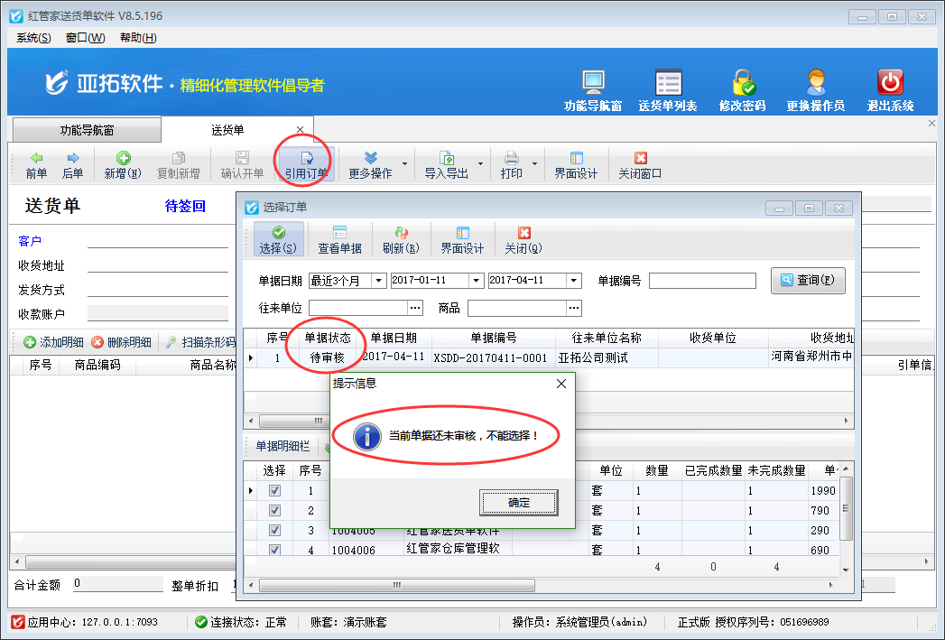 欢迎下载试用可控制操作员修改权限的软件:信管飞送货单软件