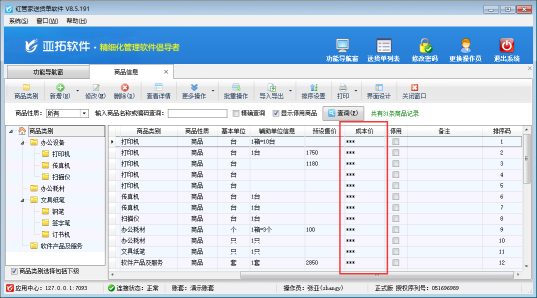 进入批量维护商品信息界面,录入各个商品的成本价,最后点击“保存”按钮即可。如图所示。