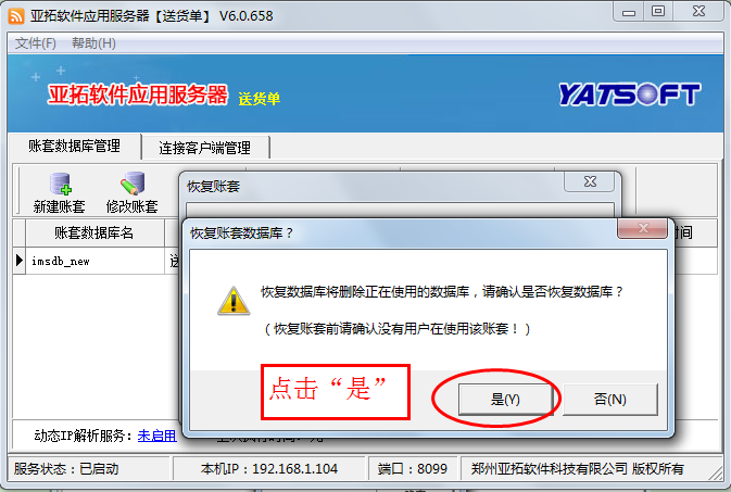 在新主机电脑上安装软件,打开亚拓软件应用服务器,然后点击“新建账套”,执行新建账套操作,账套名为此前备份的账套名,新建账套完成后,选择此新建的账套,点“恢复账套”,选择此前拷贝过来的备份账套文件进行恢复数据,数据恢复后,在登录窗口选择账套登录,检查下数据是否完全恢复。