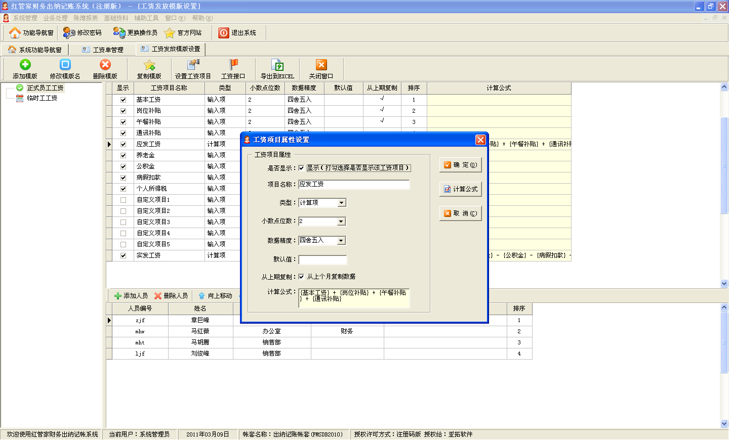 1、增加工资管理功能,支持工资项目自定义(可定义工资项目、计算公式、是否从上月复制),提供工资单审核、签领管理,可按照部门/年度/工资项目进行各种分析和统计。