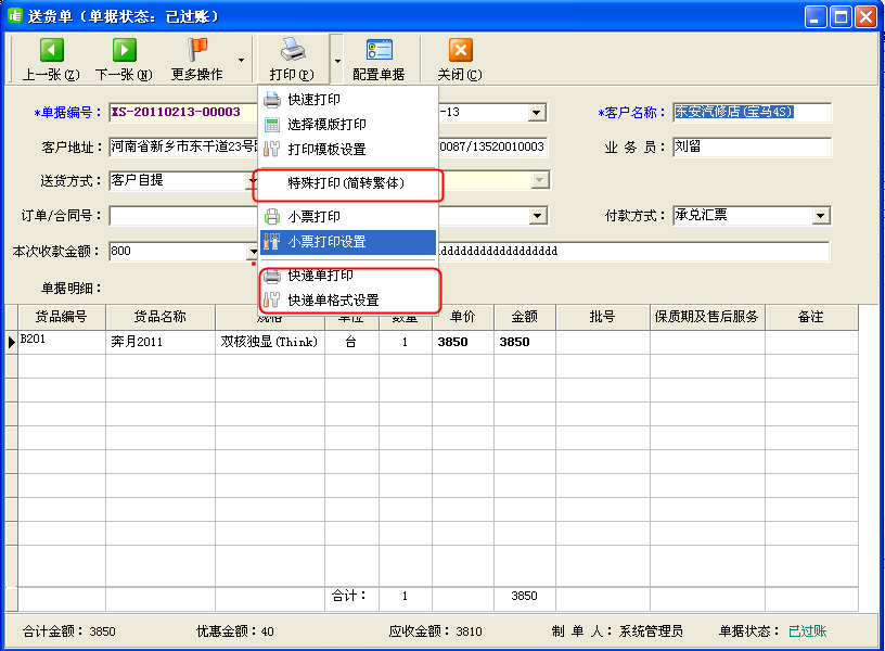 3、送货单打印时,支持暂时开启特殊打印,自动简繁体转码,方便仅仅临时需要繁体版开单的客户。