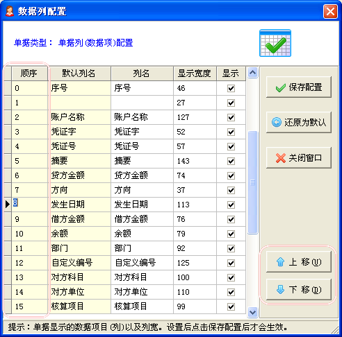 1、数据列配置支持调整数据列的显示顺序。