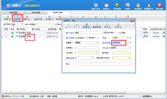 在财务信息化进程中,出纳记账软件是提升工作效率、保障财务数据准确性的重要工具。但在实际操作里,不少用户会遇到这样一个状况:登记日记账凭证时,系统默认取电脑操作系统日期作为凭证发生日期;当需要补录出纳凭证并修改日记账凭证的发生日期后,保存时系统会弹出“发生日期小于账户的启用日期,请修改后再保存!”的提示,导致操作无法继续。三步轻松解决! 只需调整账户的启用日期,让它早于您要补录的凭证日期即可,操作超简单:第一步:进入资金账户设置 打开软件,