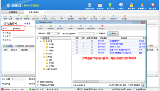 在仓库管理与销售开单的日常运营中,您是否频繁遭遇这样的挑战:系统内商品种类繁多,开单时需在成千上万条商品记录中艰难搜寻,才能定位到对应客户的合作产品?这一过程不仅耗时耗力,还极易因选错规格或漏选单品而影响工作效率与客户满意度。 信管飞仓库管理软件、信管飞RMS软件、信管飞送货单软件推出“选择商品窗口仅显示客户相关商品”功能,让销售开单更精准、更高效,助力企业实现精细化客户服务与管理升级。 告别无效筛选,精准锁定客户专属商品 &n