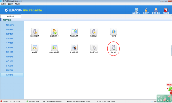 为防止用户电脑硬盘出现故障或者是用户的操作系统因计算机故障或者是人为误删系统组件等原因而造成的操作系统不能正常使用继而影响软件的正常运行,造成数据丢失等情况,我们建议您可以定期对账套进行备份并保存,且同时在U盘或者是其他硬盘上进行二次备份,以便电脑操作系统或者是账套出现问题的时候可以从账套备份文件中恢复数据,下面我们以亚拓管理软件专业版为例详细介绍下如何在进销存管理系统中对账套进行备份。