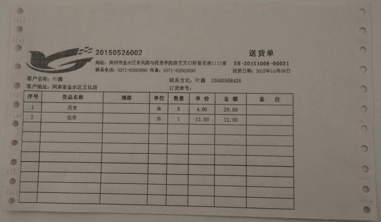 图四 已打印的送货单单据