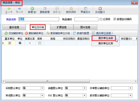 修改单位名称,会自动更新之前的开过的单据的商品基本单位。