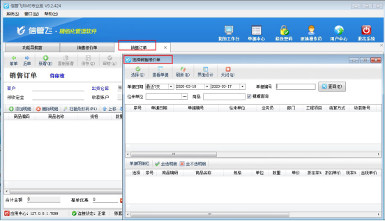 以“信管飞RMS专业版”为例,直接开销售报价单并被销售订单引用,再次开销售订单引用销售报价单会获取不到销售报价单信息,如下图所示: