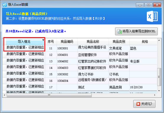 导出的Excel文件中批量维护好商品的成本价,维护完成后复制内容,在批量维护商品信息界面点击“导入更新”,导入界面粘贴内容,下一步自动对应商品,进行导入操作,导入完成,导入结果会显示“数据内容重复,已更新相应内容”,关闭导入界面,如下图所示: