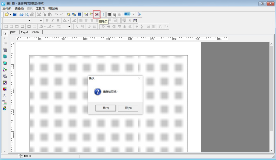 在单据开单界面选择打印—》打印格式设计—》设计格式,进入打印模板的设计器界面,菜单栏设置中点击删除页,可以删除无用空白页面,如下图所示: