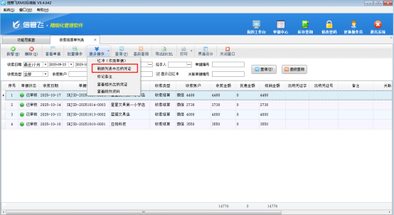 完成界面配置后,用户只需在工具栏的“更多操作”中点击“刷新列表中出纳凭证”,系统就会自动更新列表信息。此时,那些已经转记了出纳凭证的收款结算单就会显示凭证字和凭证号,而未转记的则显示为空白。