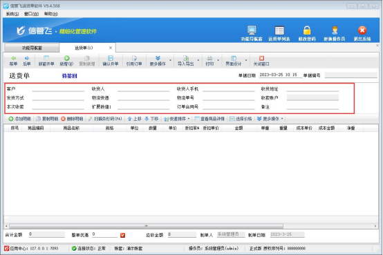 此文章相关演示视频:打印模板多页打印时如何设置每页金额小计演示视频 信管飞送货单软件、信管飞RMS软件、信管飞仓库管理软件等都支持设计打印模板格式,软件默认打印模板格式的合计是每页都显示,有客户需要存在打印多页的情况下,显示每页小计,本文示范下如何设置打印模板金额小计。