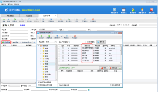 亚拓管理软件、红管家仓库管理软件、红管家送货单软件开单时都可以直接从商品信息中选择已有的商品进行快速开单,软件都支持对商品信息进行排序。开单添加明细时弹出的“选择商品”窗口中商品信息显示的先后顺序如果需要调整,可以到商品信息中调整。下面我们以亚拓管理软件专业版为例介绍一下对商品信息排序的操作方法。 登录软件,在功能导航窗点“基础资料”—