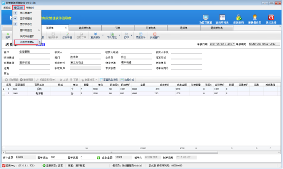 红管家送货单软件、红管家仓库管理软件、红管家出纳记账软件、红管家票据打印软件和亚拓管理软件都可以同时打开多个业务单据窗口,方便用户对不同的业务单据进行切换窗口查看信息等操作。打开多个窗口界面后,需要关闭这些已打开的窗口时,可以逐个关闭各个窗口,也可以一次性关闭所有窗口,如何快速关闭所有已打开窗口呢? 我们以送货单软件为例,示