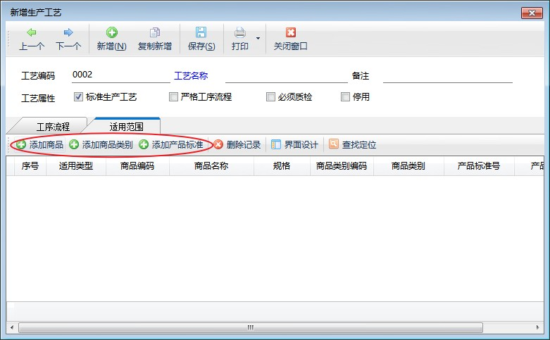 适用范围:可添加此生产流程使用的商品和产品标准。