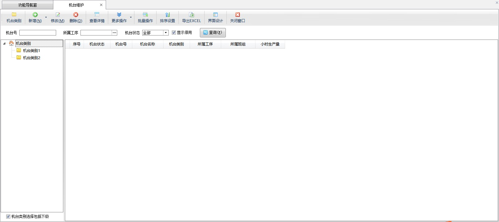 机台类别:点工具栏中的“机台类别”按钮,可对机台的分类进行维护。