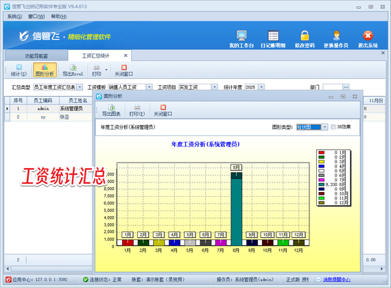 信管飞出纳记账软件专为中小企业打造,其工资管理功能可高效解决薪资核算难题。支持根据公司架构自定义工资模板,无论是销售岗的提成制、技术岗的项目制,还是管理岗的年薪制,均可灵活设置基本工资、绩效奖金、社保公积金等项目,满足多元化薪酬体系需求。 智能计算引擎大幅简化操作流程,输入基础数据后,系统可自动根据工资模版精准核算应发/实发工资,并支持从上月数据快速复制,减少重复录入。 工资条生成全程自动化,支持一键打印或微信分发,格式可自由调整,确保员工及时、清晰获取薪资明细。