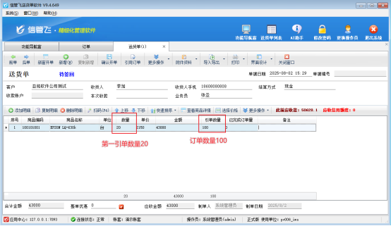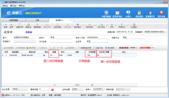 信管飞送货单软件、信管飞RMS软件等可开销售单和打印销售单,软件中默认有十几种打印模板格式,有用户需要在打印模板上体现客户的订单数量信息,内置模板中没有此数据项,本文以内置模板进行示范如何添加订单累计数量。